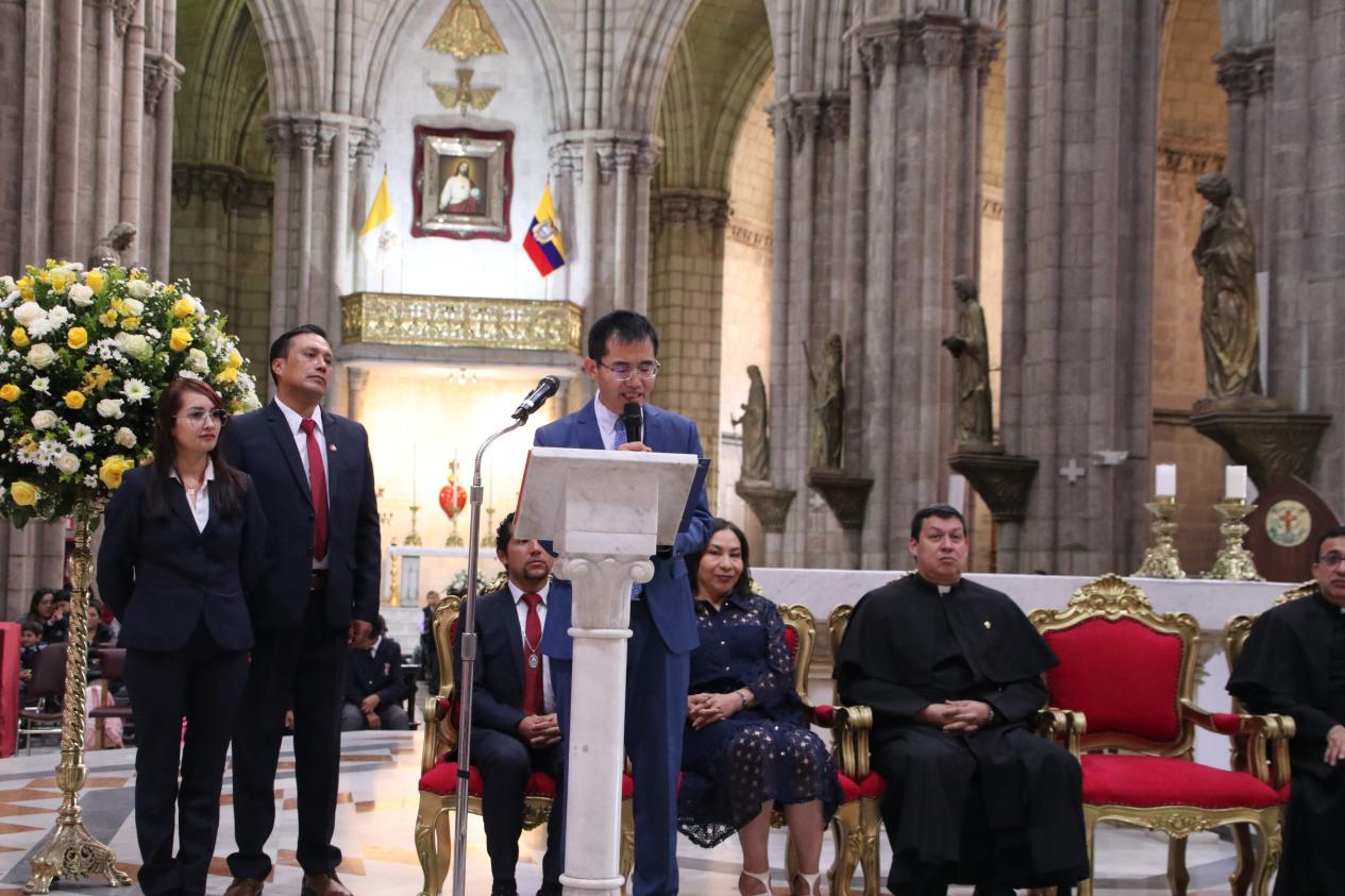 2024年9月2日,思源孔子课堂下设教学点Liceo Matovelle学校开学典礼在la Basilica 国家誓言大教堂举行。思源孔子课堂校长曹孝宏在致辞中祝福同学们在新的学期学有所成,不断进步,希望同学们在提升中文水平的同时,领略中华文化的独特魅力,成为中厄两国文化交流的助推者。