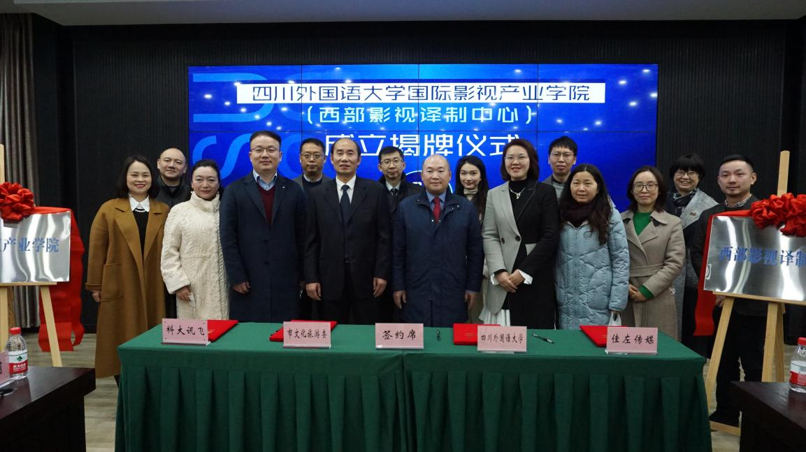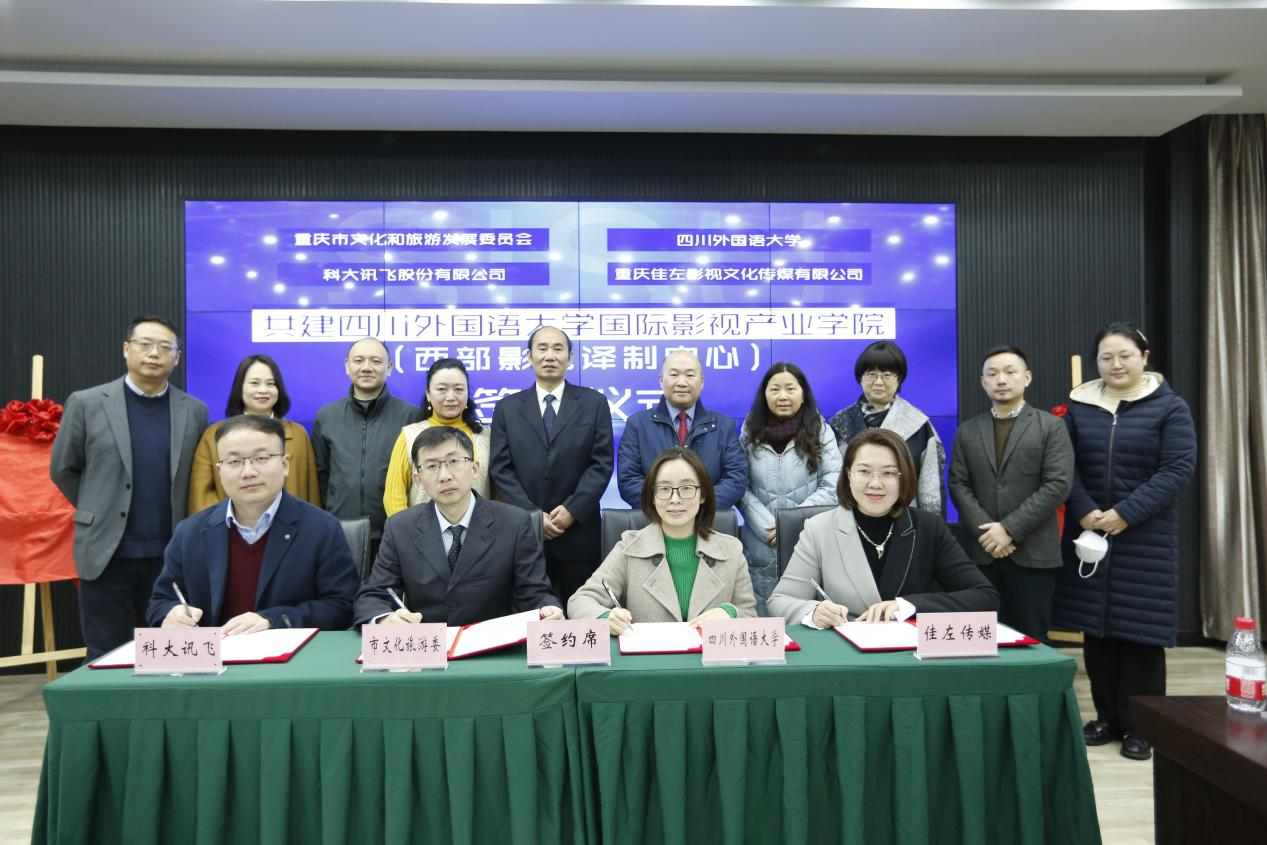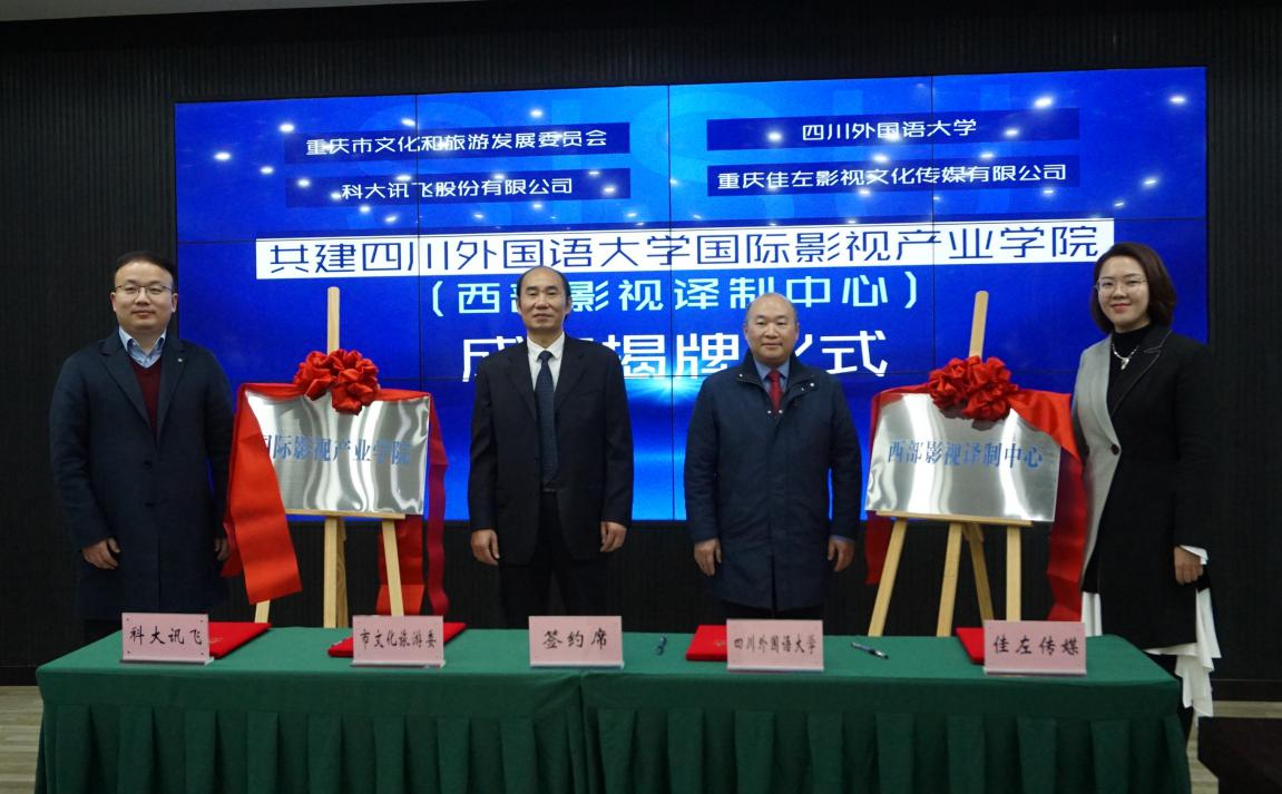国际影视产业学院暨西部影视译制中心由重庆市文化和旅游发展委员会、四川外国语大学、科大讯飞股份有限公司以及重庆佳左影视文化传媒有限公司联合共建,是全国首家政校企三方共建的国际影视产业学院。