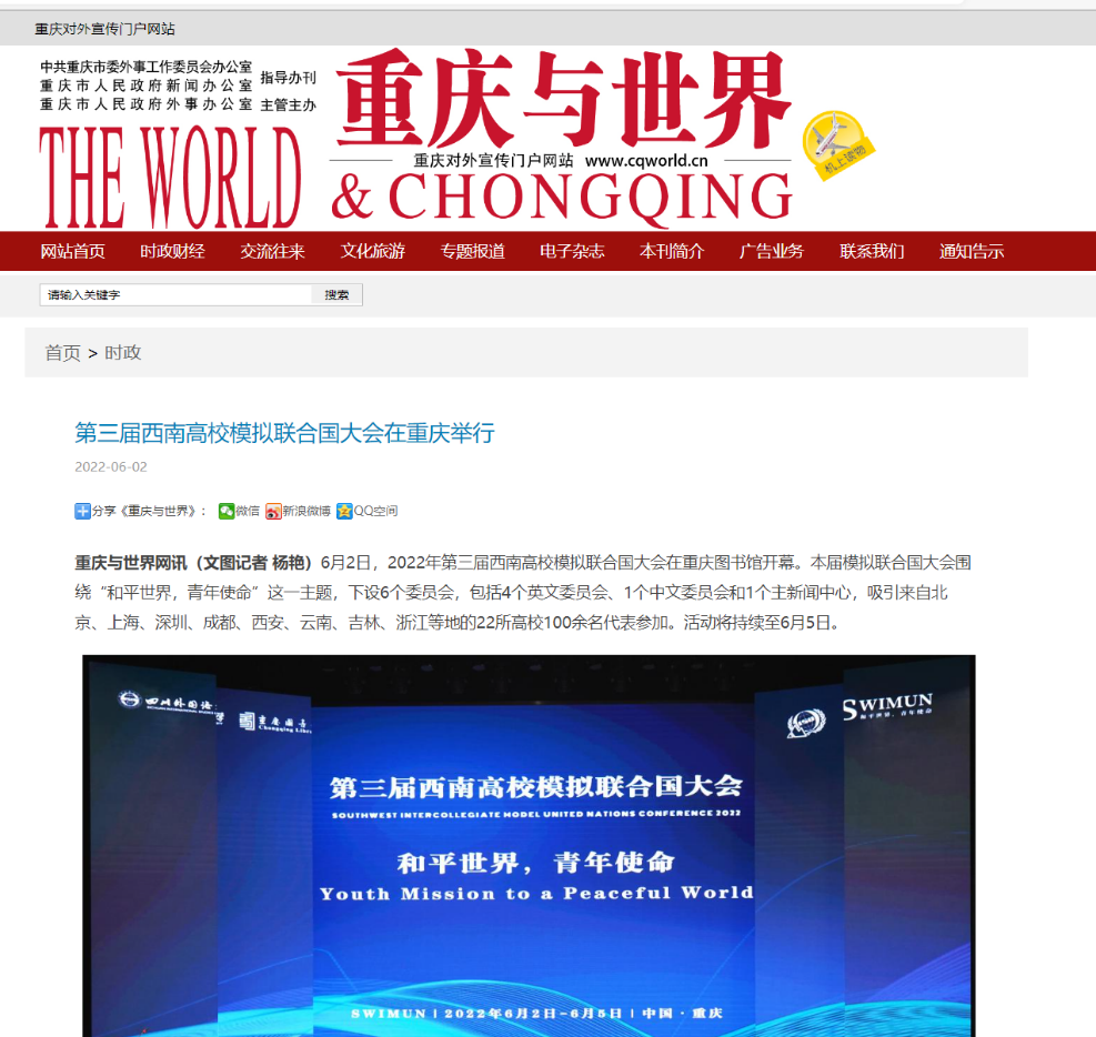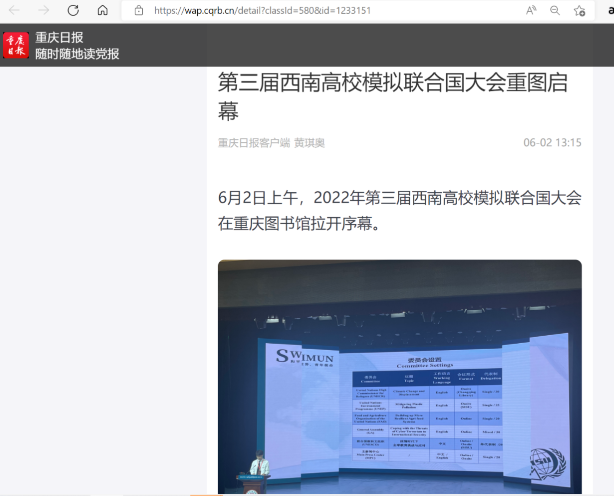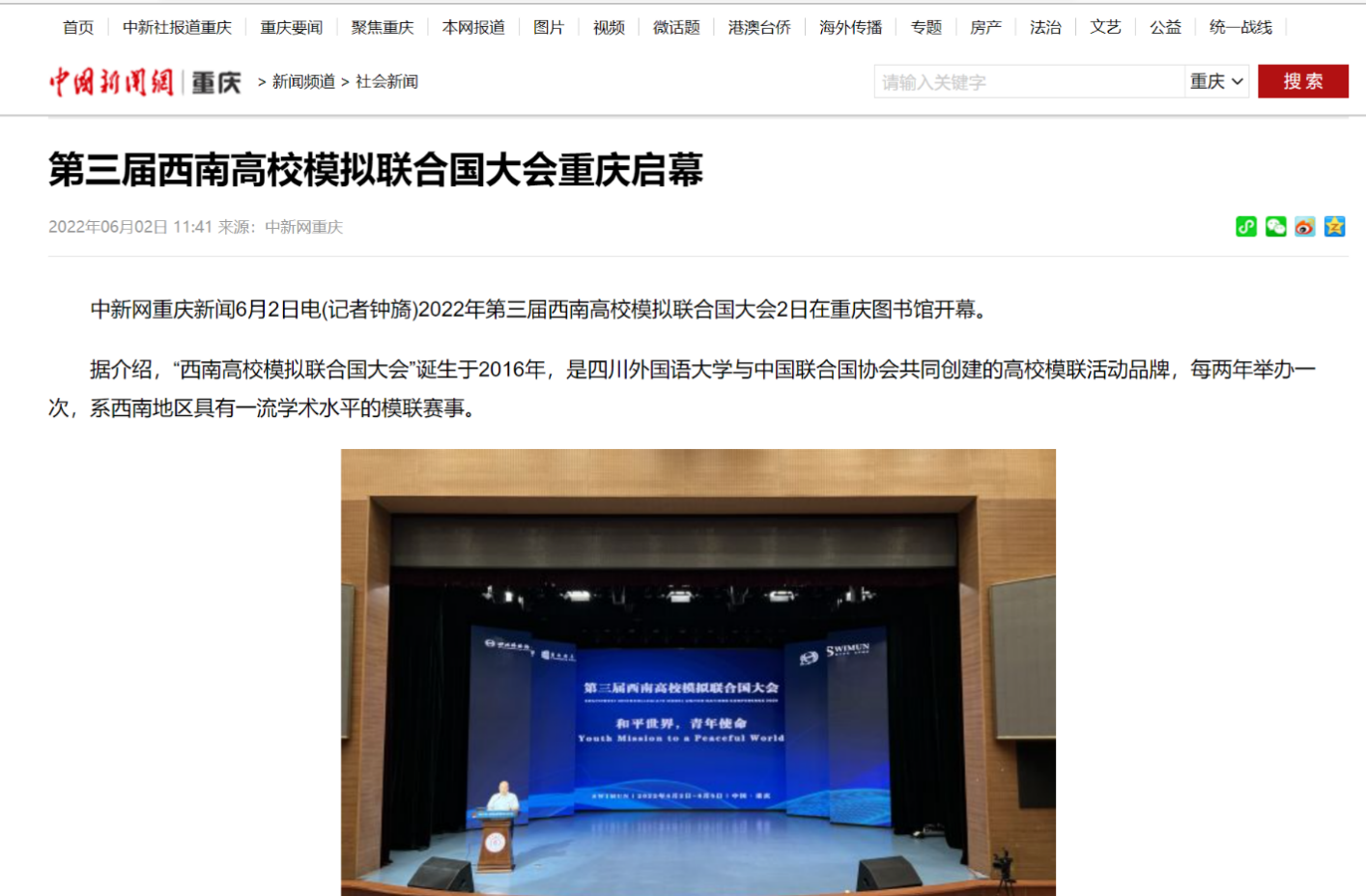 附2:2022年第三届西南高校模拟联合国大会相关新闻数据及链接