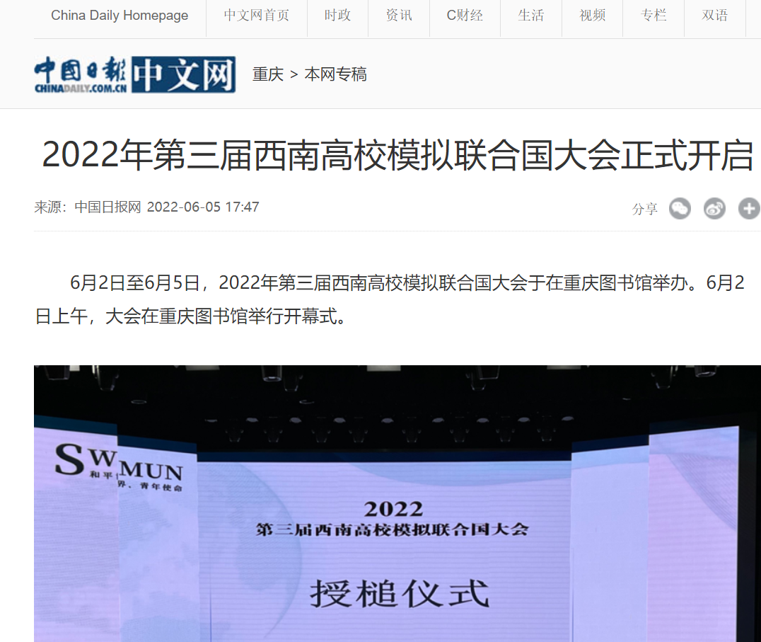 2022年第三届西南高校模拟联合国大会正式开启-中国日报网(chinadaily.com.cn) |
