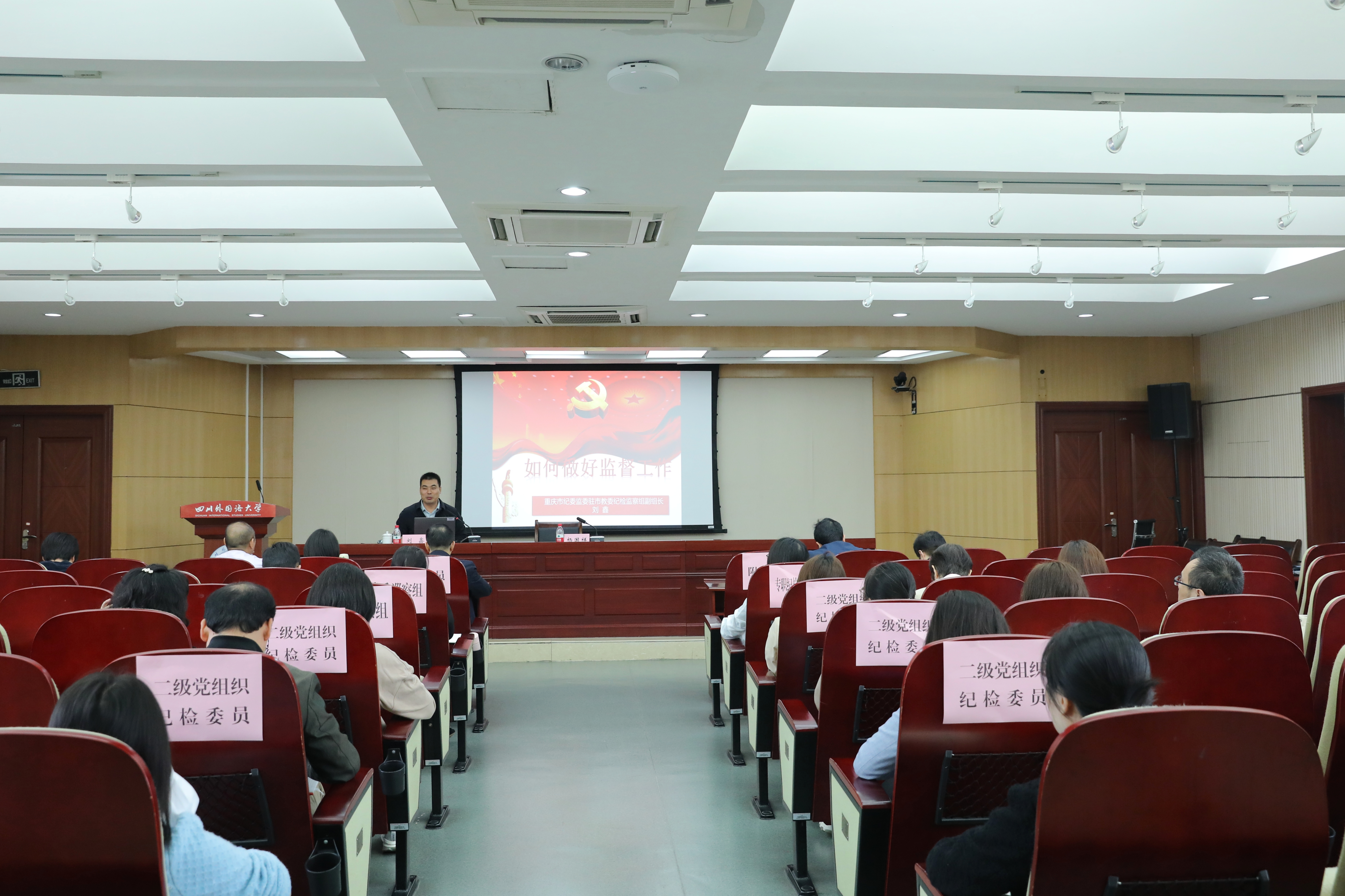 为进一步加强纪检监察干部队伍建设,提升干部专业素养和履职能力,10月31日,学校纪委、监察专员办举办纪检监察干部业务能力提升专题培训,邀请重庆市纪委监委驻市教委纪检监察组副组长刘鑫作“如何做好监督工作”专题授课。学校纪委委员、附属外国语学校纪委书记、二级党组织纪检委员、专职纪检监察干部及党委巡察组全体成员参加会议。会议由学校党委常委、纪委书记、监察专员杨国祥主持。