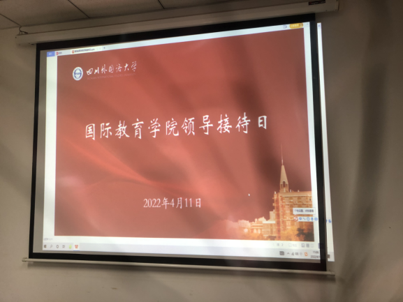 2022年4月11日11:00,四川外国语大学“国际教育学院领导接待日”活动在立德楼B405举行。本次活动由国际教育学院党总支副书记黄茜主持,国际教育学院党总支书记丁欢、院长龙洋以及30余名师生代表参与了本次活动。