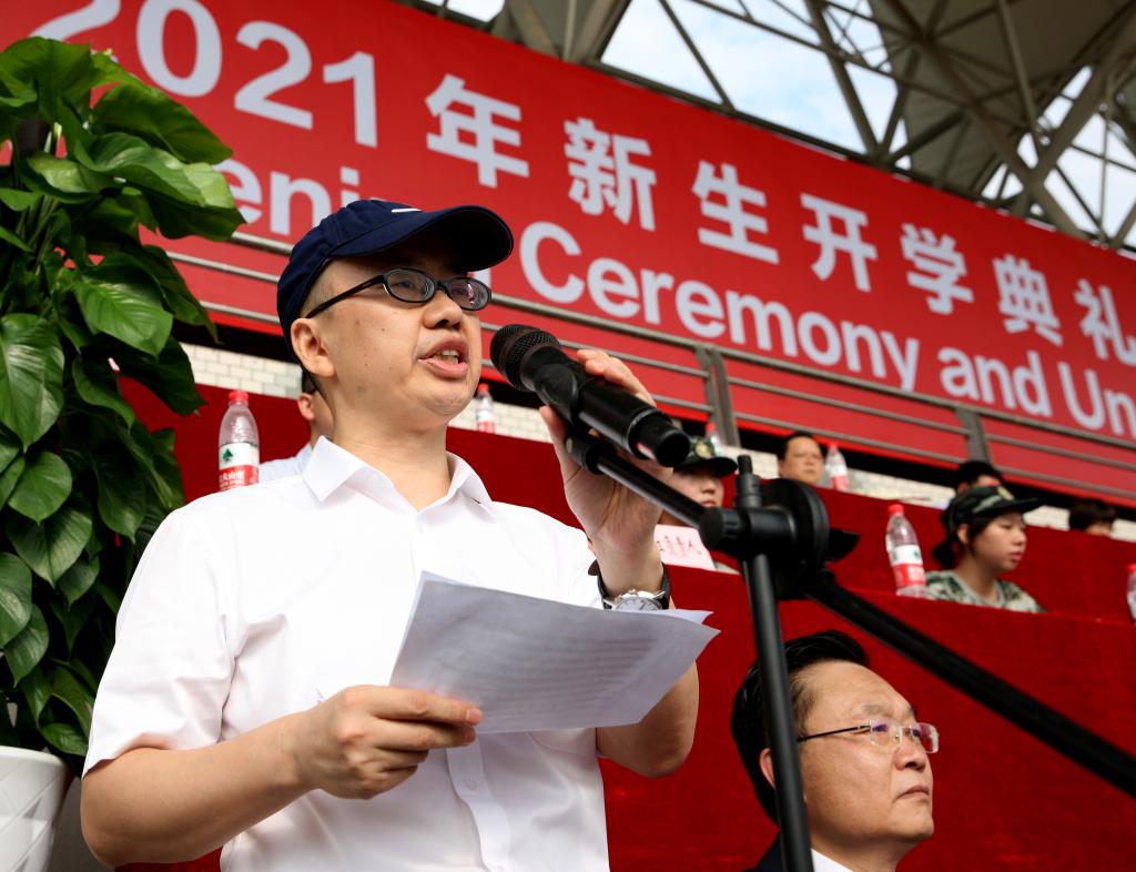 “我怎样才能使即将到来的岁月成为我生命中最好的岁月呢?”作为一名“老兵”和教授,我想和你们分享“3R”。科研处处长、翻译学院院长胡安江教授在发言中寄语新同学:酷爱阅读(reading),尽情阅读;重新发现自己(rediscovery),拓宽到专业以外的领域;责任(responsibility),对自己、家庭、社会、国家负责,在未来的巨大变化中找到出路,最终成为自己渴望成为的人。