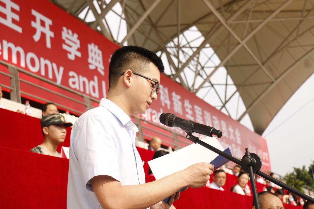 研究生新生代表,英语学院2021级博士生杨玉顺在发言中表示,作为博士研究生,主要任务是培养学术创新能力。川外为学子们提供了良好的学术环境,一批批学者带领着学子走在学术的最前沿。他寄语本科新生,要好好规划学习生活,在火热的青春中放飞人生梦想,在拼搏的青春中成就事业华章。