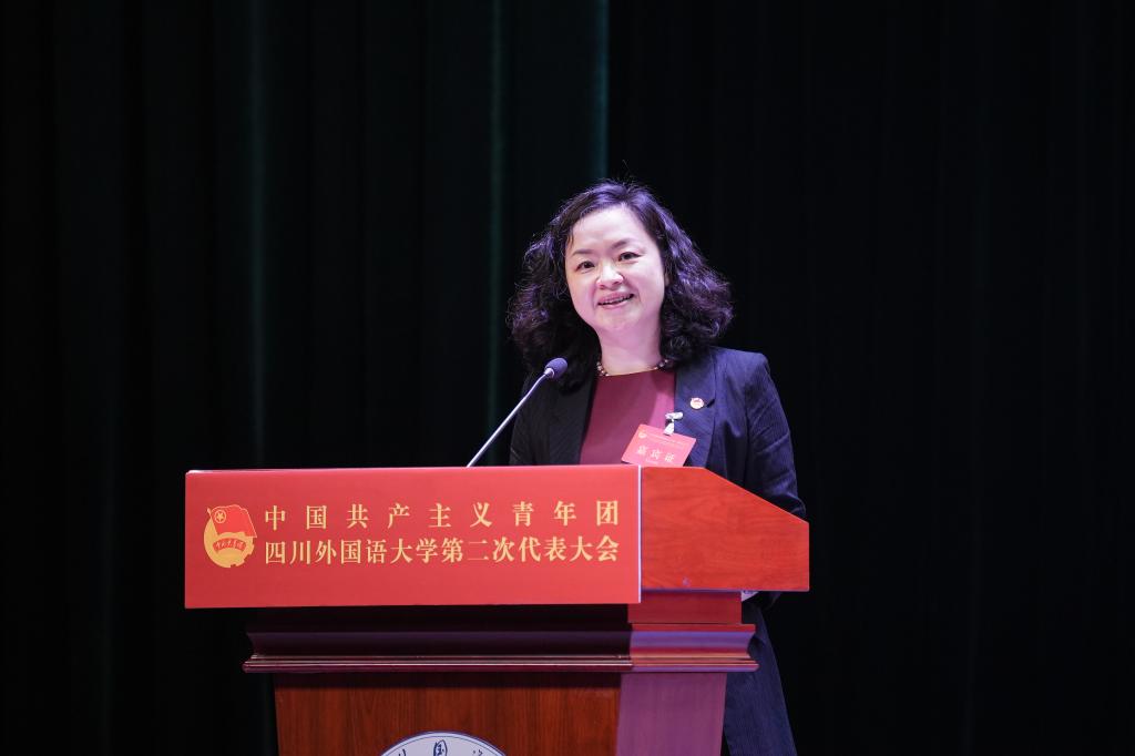 校党委书记邹渝在大会上向全体团学干部、共青团员、青年大学生致以问候,并发表讲话。他指出,共青团四川外国语大学第一届委员会立足共青团“三个根本性”问题,从严治团,在组织动员青年、教育引导青年、服务联系青年、维护青年合法权益等方面发挥了桥梁和纽带作用,为学校争取青年人心、汇聚青年力量、完成中心工作等方面作出了应有的贡献。邹渝向川外青年提出三点希望。一是川外青年要准确识变,胸怀“两个大局”,做追梦路上的开拓者。要提升国际视野,准确认识到“船到中流浪更急、人到半山路更陡”;要准确认识到中华民族伟大复兴绝不是轻轻松松、敲锣打鼓就能实现的,必须进行具有许多新的历史特点的伟大斗争;要准确认识到肩负的重大历史使命和时代责任。在面对前进道路上的荆棘坎坷,要迎难而上,要有越是艰险越向前的信念,做一个有狼性血性、敢闯会创的新时代川外人。二是川外青年要积极应变,心怀“忧患意识”,做追梦路上的奋进者。要树立忧患意识、危机意识,不断增强知识更新的紧迫感,如饥似渴学习,既扎实打牢基础知识又及时更新知识,既刻苦钻研理论又积极掌握技能,努力成为“一精多会”“一专多能”的复合型国际化人才。要坚持学以致用,深入社会、深入基层,在社会的大学校掌握真才实学,锻造本领能力,努力成长为可堪大用、能担重任的栋梁之材。三是主动求变,培养“担当精神”,做追梦路上的奉献者。要站在新时代高度,把准时代的脉搏,主动求变,突破从自身角度、从理想状态认识和理解世界的局限,担当时代责任和使命、在奋斗中练就过硬本领、在实践中不断锤炼品德修为,不负时代所托。