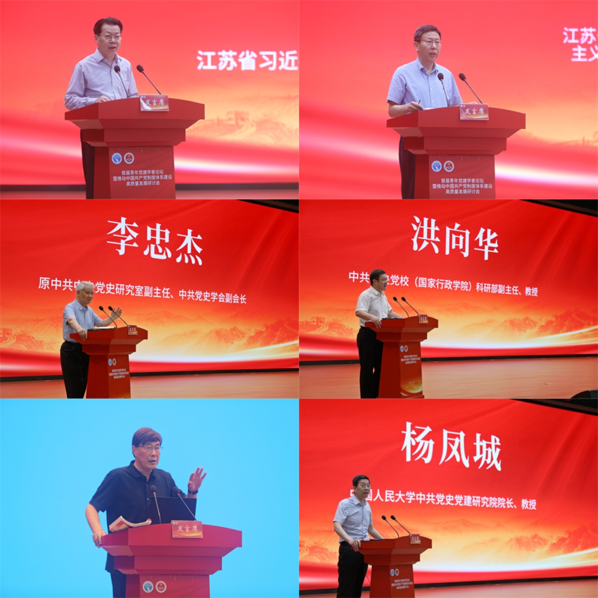 7月2日上午主旨报告环节分为上下半场,上半场,原中共中央党史研究室副主任、中共党史学会副会长李忠杰,中共中央党校(国家行政学院)科研部副主任洪向华,中国人民大学中共党史党建研究院院长杨凤城,华东师范大学马克思主义学院终身教授齐卫平分别以“对青年党建学者的希望”“自我革命的制度规范体系”“关于党的建设研究的视野和方法”“用党的建设最新理论成果指导新的伟大工程”作报告。