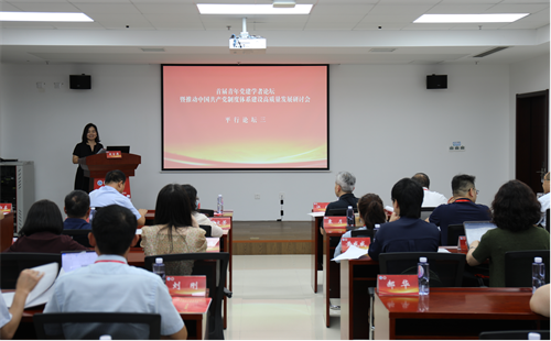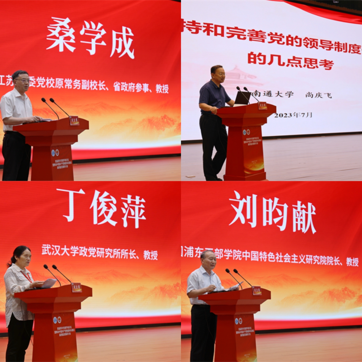 下半场,江苏省委党校原常务副校长、省政府参事桑学成,南通大学党委书记、教授尚庆飞,武汉大学政党研究所所长丁俊萍,中国浦东干部学院中国特色社会主义研究院院长刘昀献,分别以“以伟大自我革命引领伟大社会革命的理论逻辑和历史逻辑”“新时代坚持和完善党的领导制度体系的思考”“完善党的建设制度体系的主要内容和实践要求”“大力推进党建学科的创新发展”作报告。