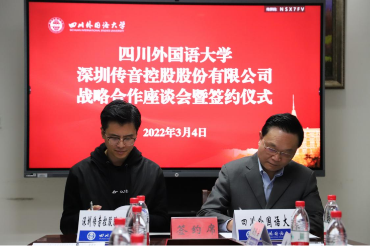 2022年3月4日下午,四川外国语大学与深圳传音控股股份有限公司战略合作座谈会暨签约仪式、2022届传音控股春季校招宣讲会暨2023届传音国际交流班启动会在我校顺利举行。
