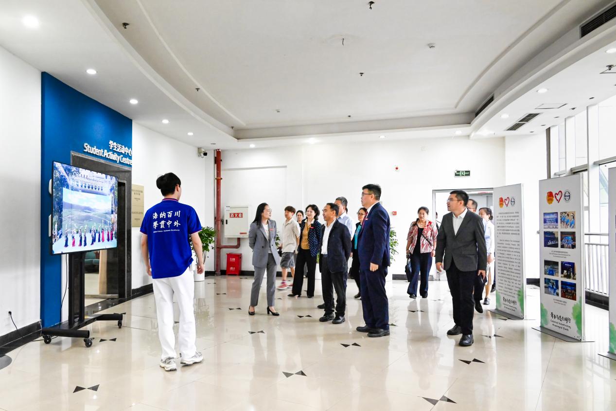 见面会后,专家组一行到图书馆大厅参观了我校国际化建设成果展,参观了非通用语主题馆;到校团委、四川外国语大学非物质文化遗产推广基地了解了涉外志愿服务团队工作,观摩中外学生文化活动,并对相关学院和职能部门负责人进行了深度访谈。