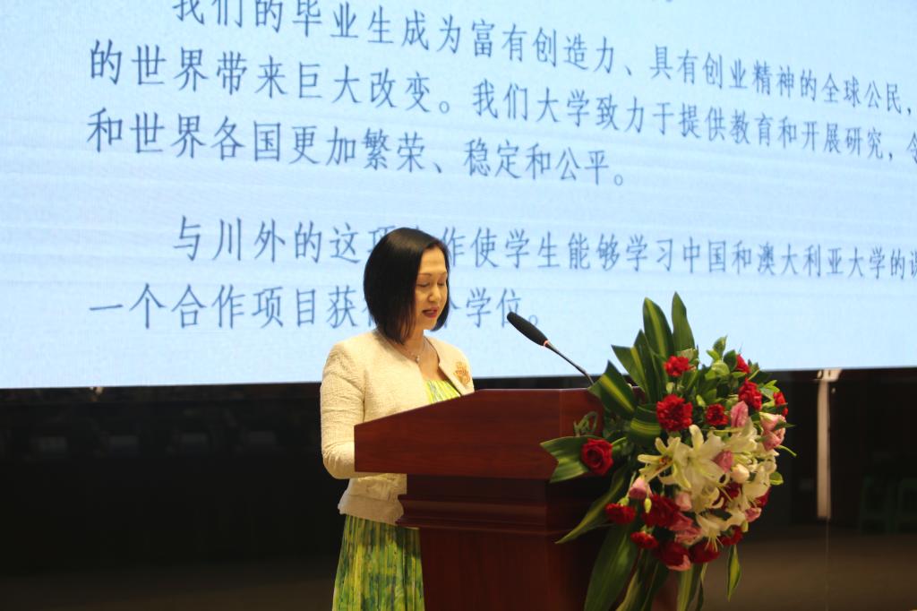 国际教育学院院长曾传芳指出,中澳合作项目特别准确地诠释了川外的办学理念,特别集中地展示了川外的办学特色。她系统地介绍了本项目的办学理念、培养目标、未来前景、资源配备和对学生的要求。
