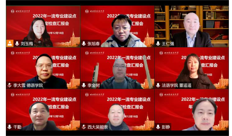 为全面掌握学校一流专业建设进展情况,推动专业建设取得实质性进展和显著性成效,12月18日上午,学校通过线上会议的形式开展了一流专业建设点年度检查汇报会。本次汇报会邀请了重庆科技学院干勤教授、重庆师范大学杨如安教授、西南大学吴能表教授、重庆邮电大学胡学刚教授、西南政法大学王怀勇教授、重庆大学彭静教授、重庆工商大学龚英教授担任专家,教务处、一流专业建设点负责人、部分教师参加了汇报会。副校长王仁强出席了汇报会。