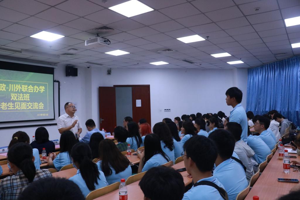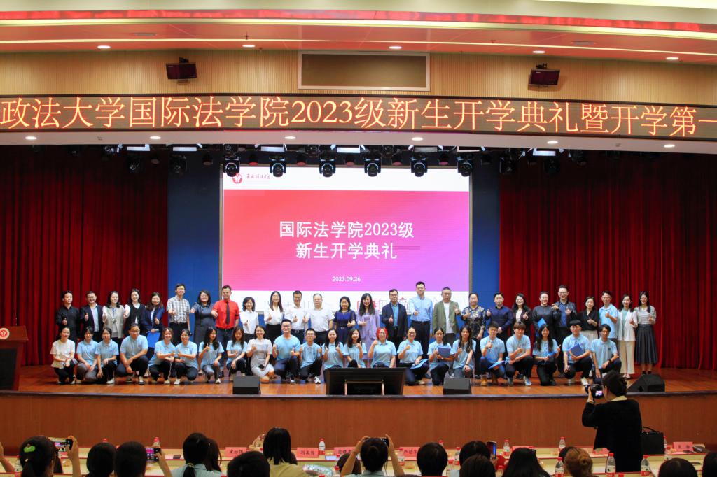 9月26日,严功军副校长受邀参加西南政法大学国际法学院2023级新生开学典礼,教务处处长刘玉梅、法语学院副院长刘帅锋等随行,典礼在西南政法大学笃行楼礼堂隆重举行。西南政法大学国际法学院院长张晓君、党委书记吕亮、副书记赵鑫、副院长周江、教务处副处长武夫波、“双法班”辅导员和任课教师代表以及2023级“法语+法学”和“法学+法语”双法班全体新生参加典礼。