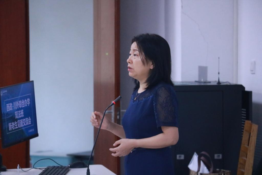 致辞中,严功军副校长首先对西南政法大学的邀请表达了感谢,他表示,“法语+法学”“法学+法语”联合学士学位项目是川外和西政两校在全国高校新文科建设方面的一项创新,项目整合了两校的优势资源。当前,世界百年未有之大变局加速演进,迫切需要培养一大批具有强烈家国情怀、兼具国际视野、通晓国际规则、善于处理国际事务的涉外法治人才。双法项目顺应时代发展潮流、迎合国家战略发展需要,将为国家培养一批精通法律外语,具备优秀涉外法治服务能力的专业人才。项目招生3年以来,两校充分发挥法语和法学专业优势,注重引导学生将外语能力和跨文化交流能力融入涉外法治学习中。他对全体新同学提出殷切期望,希望大家坚定理想信念,锻炼过硬本领,成为通专结合的有用之才,为国家建设添砖加瓦。