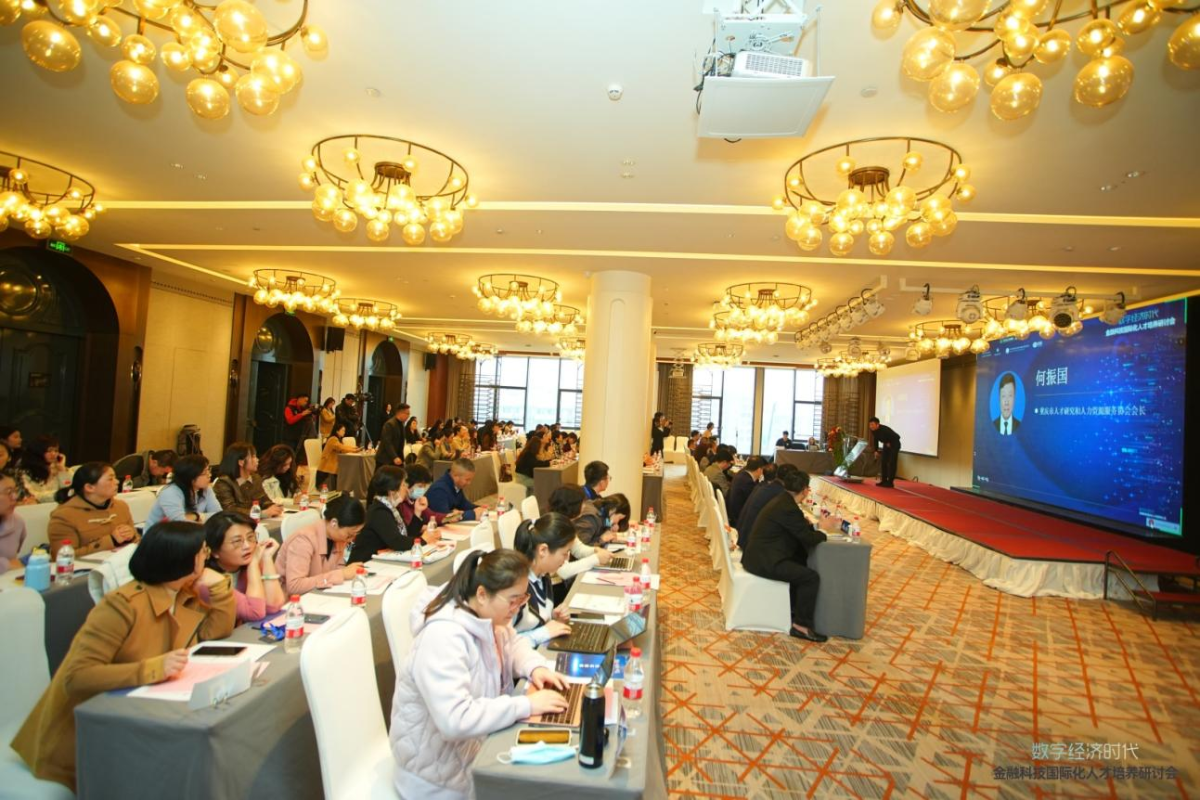 何振国作为重庆市人才研究和人力资源服务协会会长,从金融科技人才的专业性强度、复合型高度、国际化程度等方面入手,阐述了金融科技企业及金融机构金融科技部门对人才的具体需求,表示金融科技高等教育资源依然稀缺,同时邀请社会各界力量共同构筑重庆金融科技人才高地的“强磁场”。