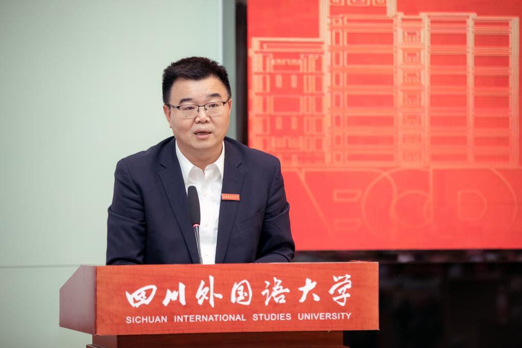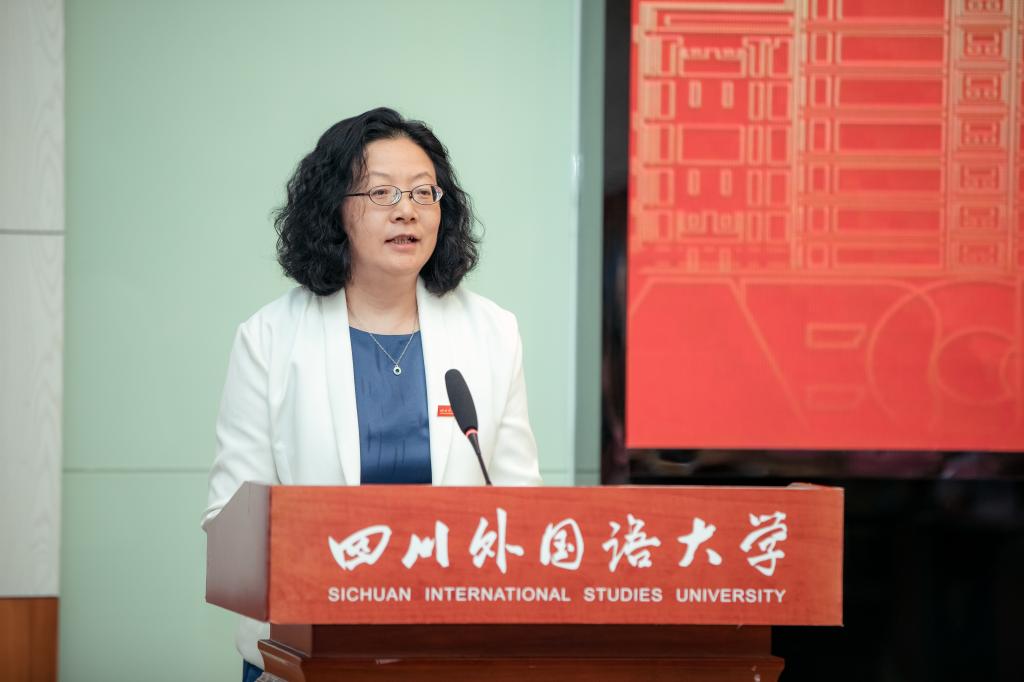 董洪川对川外商英建设10周年的成果给予肯定,并对川外商英的未来发展寄予厚望。他对十年来一直支持川外商英的各位领导、专家、学者和全体教职员工们表示衷心的感谢。他提到,商务英语专业在最初创办的时候作为一个新型专业,我校和学院投入汗水,全体师生员工共同努力奋斗,已将川外商英建设成重庆市和西部地区具有重要影响力的学科品牌。进入新时代、承担新使命。商务英语学院作为学校学生体量最大的学院之一,作为国家一流本科专业建设点,要更好地践行“精英融外,探商明道”的院训,要勇于担当先锋责任,充分发挥中流砥柱作用,为学校事业发展贡献更大的力量。一是明确发展方向。根据新文科建设的原则和要求,商务英语人才培养要突出新特色,面向国家开放经济的新格局,体现数字经济和数字贸易特色; 突出新标准,根据新的评价要求和标准,培养跨学科、高素质、复合型创新人才; 突出新学科,培养商务英语人才的信息化素养和信息技术能力,实现人文学科与信息科学的文理交叉。二是打造师资队伍。继续坚持开放包容,广纳天下英才,打造复合型、国际化、高素质的师资队伍,通过学历教育、在岗培养、国内外进修与学术交流、行业实践等方式,使教师不断更新教育理念, 优化知识结构,提高专业理论水平与教学、研究能力,形成教研互促互进的师资队伍建设良好局面。三是做强学科特色。坚持需求导向、标准导向和特色导向,充分发挥国家一流本科专业建设点的示范引领作用,努力打造“川外商英”一流专业品牌,不断深化专业教学改革,提升专业内涵和质量,突显新文科特色,持续改进商务英语教育教学理念、内容、方法、手段和评价标准,实现英语教学和商科教学的深度融合、本土教育与境外教育的深度融合,积极构建高水平本科人才培养体系,不断提升学院办学水平和学科竞争力。培养国家需要和社会满意的复合型商务英语人才。