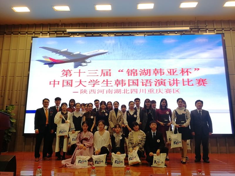 经过三个小时的激烈角逐,我校东方语学院朝鲜语专业的刘佳颖同学摘得桂冠,本次比赛也是我校学生首次在陕西、河南、湖北、四川、重庆五个地区区域赛中荣获第一名。另一名参赛选手蒋格同学也获得优秀奖。刘佳颖同学也将于12月赴韩国首尔参加第十三届锦湖韩亚杯中国大学生韩语演讲比赛决赛。