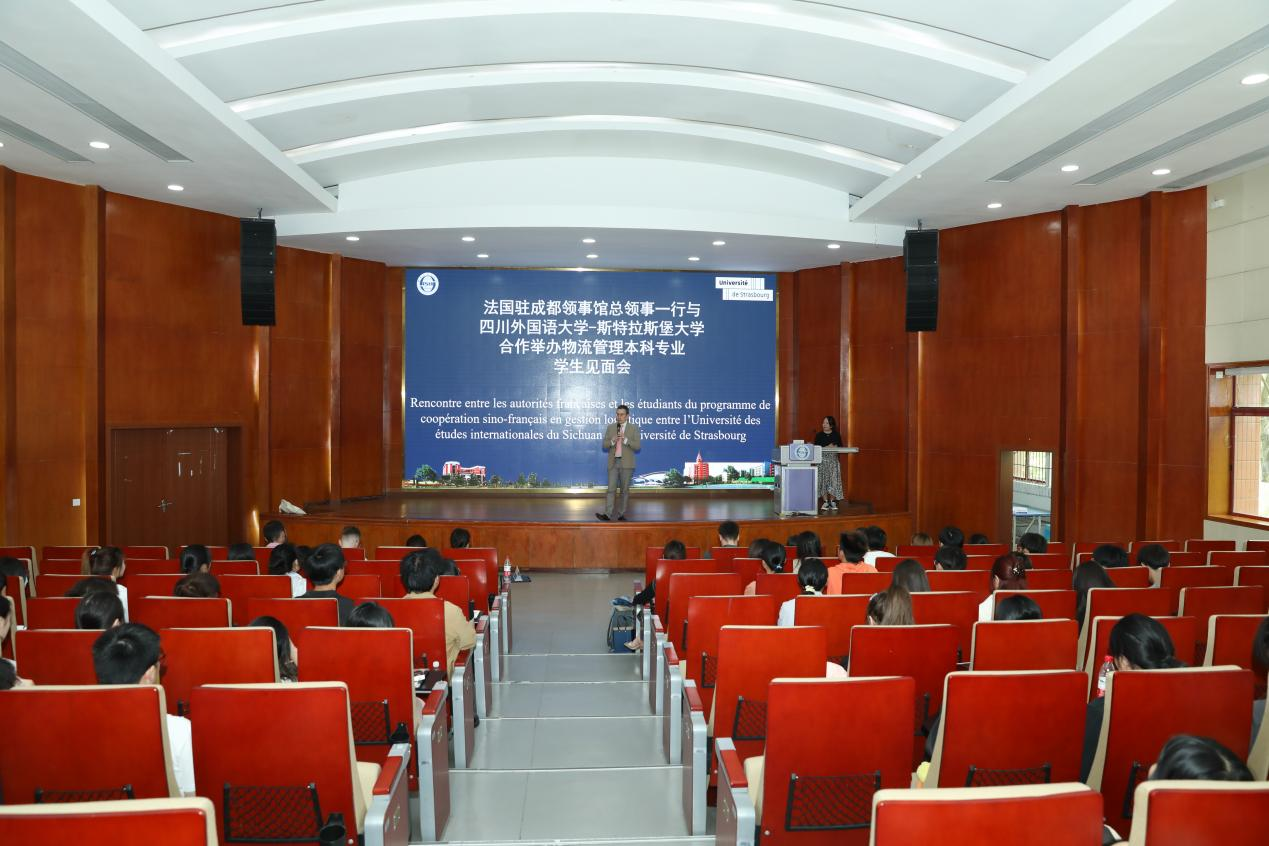 戴宁智总领事对川外的热情接待表示感谢。他指明后疫情时代国际“人文交流”的必要性,表示法国驻成都总领事馆将助力川外与法国高校/机构间的合作交流。他强调外语高校所培养的翻译人才在人文交流,尤其是科研项目中的重要作用,期望我校法语学院及中法物流管理专业合作办学项目学生运用语言优势学好专业,成为具有国际竞争力的人才。