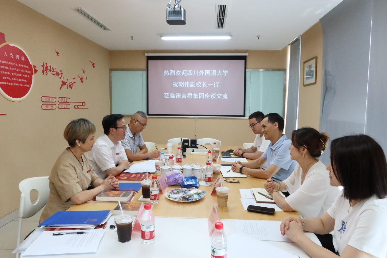 为将访企拓岗促就业专项行动走深走实,7月7日,副校长祝朝伟带队,翻译学院党总支书记郭健、翻译学院院长李金树、招生就业处老师兰雪芳一同前往四川语言桥信息技术有限公司走访调研,与四川语言桥信息技术有限公司董事长朱宪超、重庆子公司运营总监张家庆、技术培训部总监李璐、技术培训部经理苏红利进行了交流和座谈。