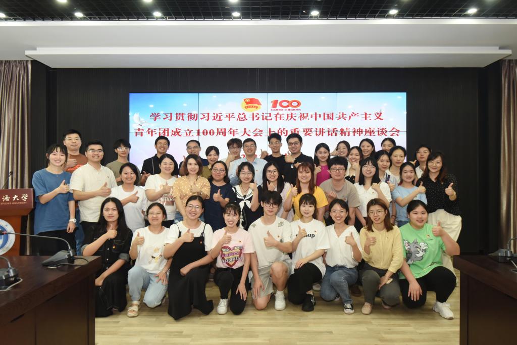 6月7日下午,我校在立德楼C117召开了学习贯彻习近平总书记在庆祝中国共产主义青年团成立100周年大会上的重要讲话精神座谈会。党委书记邹渝出席座谈会,党委组织部副部长陈惠、党委宣传部副部长宋雷、党委学工部副部长何敏及团干部及青年师生代表参会。会议由校团委书记陈派主持。