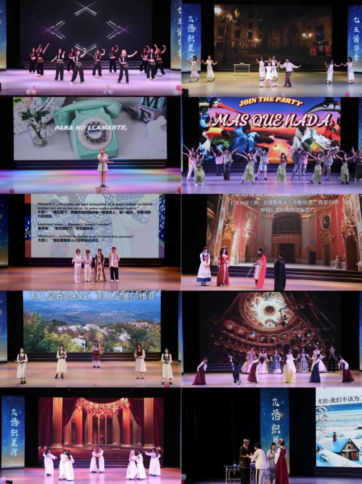 开场舞《Duro hard》,让激情在跃动的光影中肆意绽放;西班牙语歌曲《心动信号》,在炽热的旋律中聆听悸动的心跳;罗马尼亚语话剧《青春不老长生永驻》,在魔法与现实交织中领悟人生的可贵;塞尔维亚语歌曲《在那遥远的地方》,体会塞尔维亚人民对故土的眷恋与坚守;捷克语舞蹈《波尔卡》,在欢快的舞步中畅游捷克的热情世界;意大利语音乐剧《那不勒斯之夜》,诗意与热情交织,沉醉于那不勒斯的无尽浪漫;葡萄牙语歌舞《不过尔尔》,吉他与海浪共鸣,在阳光和海风中聆听歌舞交织的动人故事;波兰语话剧《屠龙传说》,探寻古老神秘的传说,见证勇气和力量的碰撞;匈牙利语歌舞表演《春天来了》,领略匈牙利语别样的风情与韵味;乌克兰语话剧《魔法南瓜》,探寻神奇的南瓜施展出的奇妙魔法。