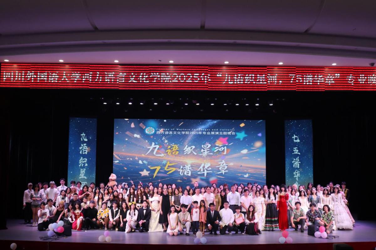星河璀璨,九语同辉。2025年6月19日晚,西方语言文化学院举办了“九语织星河,75谱华章”第二届专业展演暨庆祝四川外国语大学建校75周年主题晚会。这是一场跨越语言与文化的盛宴,更是一次对母校75载峥嵘岁月的深情献礼。