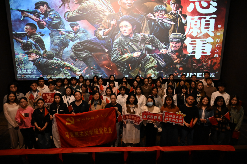 红色观影铸魂育心。一场惊心动魄的铁原阻击战,一段英勇无畏的英雄壮歌。志愿军战士们枕戈待旦、寸土不让,用血肉之躯守护身后万家团圆。10月24日,马克思主义学院组织师生共同观看了电影《志愿军:存亡之战》,重温那段峥嵘岁月,汲取爱国主义情怀的滋养。活动尾声,全场师生手举国旗,齐声高唱歌曲《我爱你中国》,向祖国深情告白,用歌声表达对祖国母亲的爱和祝福。商务英语学院组织学生观看《觉醒年代》视频,从一个个动态的故事和场景中感受革命者的精神风貌。他们表示,“爱国,就是像《觉醒年代》里的那些人物一样,将个人梦想融入国家发展大局,以实际行动践行对祖国的热爱与忠诚。”