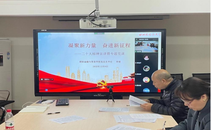 为深入学习宣传贯彻党的二十大精神,切实把广大师生党员的思想和行动统一到大会精神上来,12月9日,国际金融与贸易学院党总支书记曾健以《凝聚新力量奋进新征程》为题宣讲了党的二十大精神专题党课。党课以线上线下方式同步进行,学院全体师生党员70余人参加了本次党课学习。