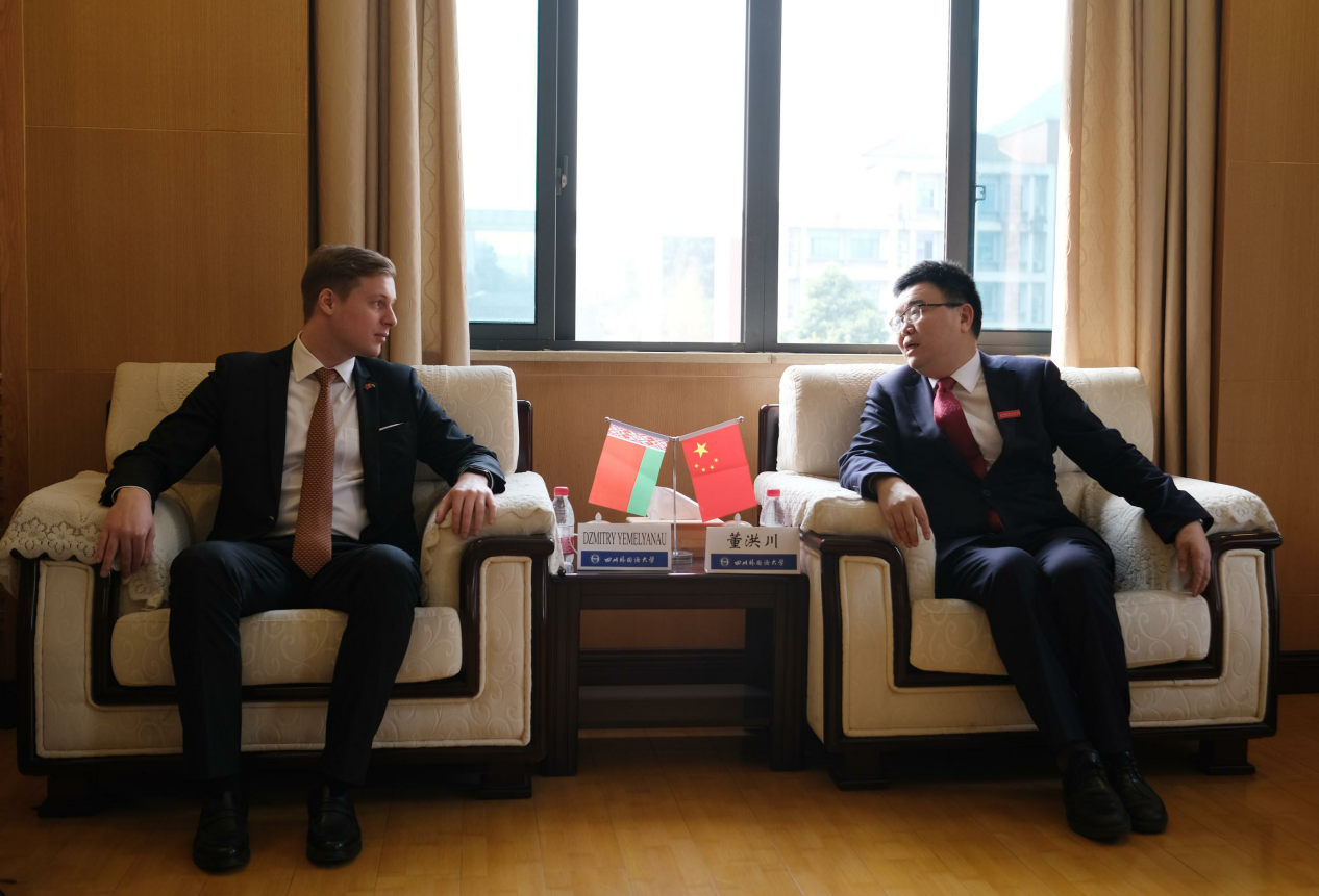 2022年3月10日上午,白俄罗斯共和国驻重庆总领事德米特里•叶梅利亚诺夫一行来访我校,校长董洪川会见来宾,国际合作与交流处、白俄罗斯研究中心相关人员出席。