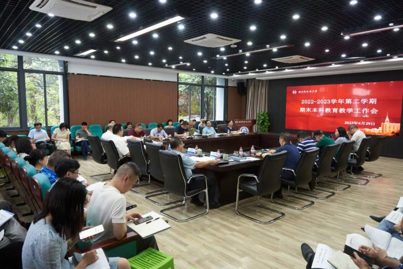 6月29日下午,学校在西区立德楼C117召开2022-2023学年第二学期本科教育教学期末工作会。党委书记邹渝、校长董洪川、副校长祝朝伟、副校长王仁强、副校长严功军、各教学单位院长、教学副院长、各职能部门负责人参加会议,会议由校长董洪川主持。
