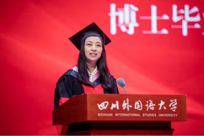 “三年前,我们满怀对未来的美好憧憬踏入歌乐山下,三年后的现在,我们也将化作燎原之火点亮祖国山河。”赵奂、粟晖钦分别代表2022届博士、硕士毕业研究生发言。他们回顾了在川外度过的美好学习时光,表达了对母校及恩师们的感激之情,表示将始终牢记“海纳百川、学贯中外”的校训,传承“团结、勤奋、严谨、求实”的校风,肩有担当、不负韶华,勇敢追逐自己人生理想的高塔。