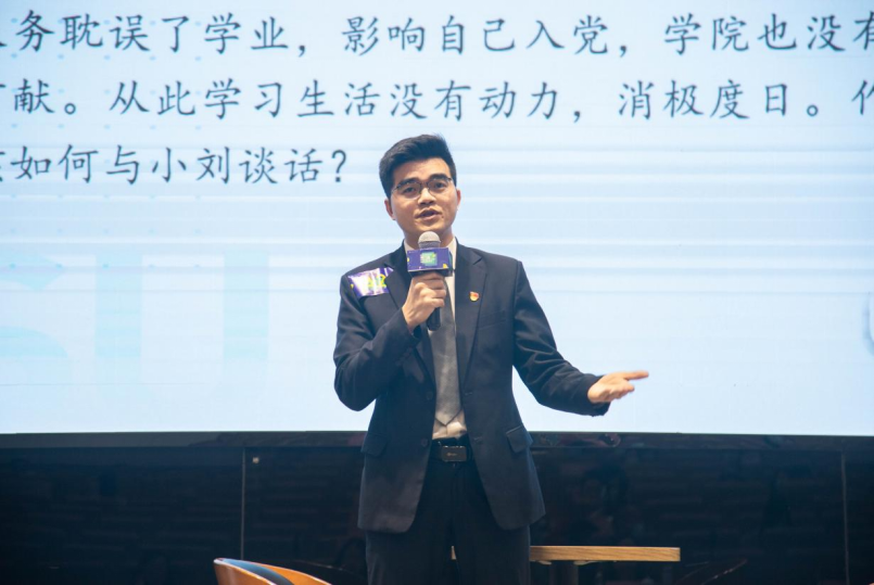 谈心谈话环节以情景再现的方式还原日常师生对话场景,主要考察辅导员对学生特征、学生成长规律的了解和把握程度。谈话结束后,选手需结合谈话情况进行简短总结,分析存在问题与改进措施,并回答评委提出的问题。该环节聚焦学生思想动态、学业规划、人际交往等实际问题,展现了辅导员解决学生实际困惑和教育引导等能力。