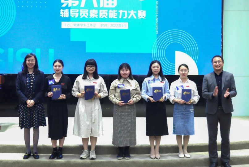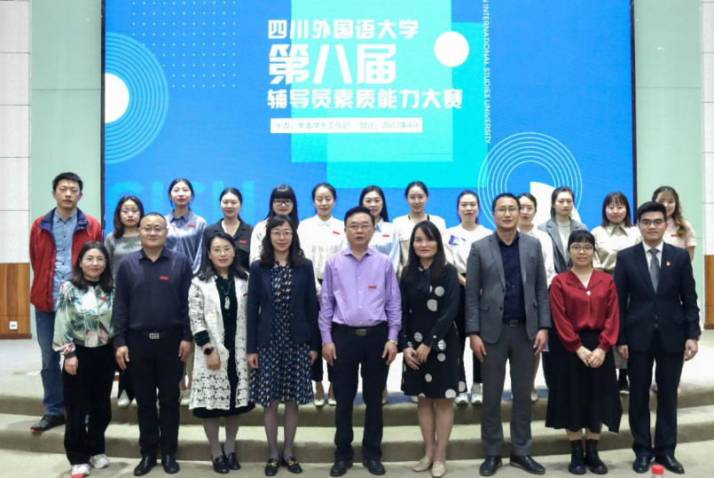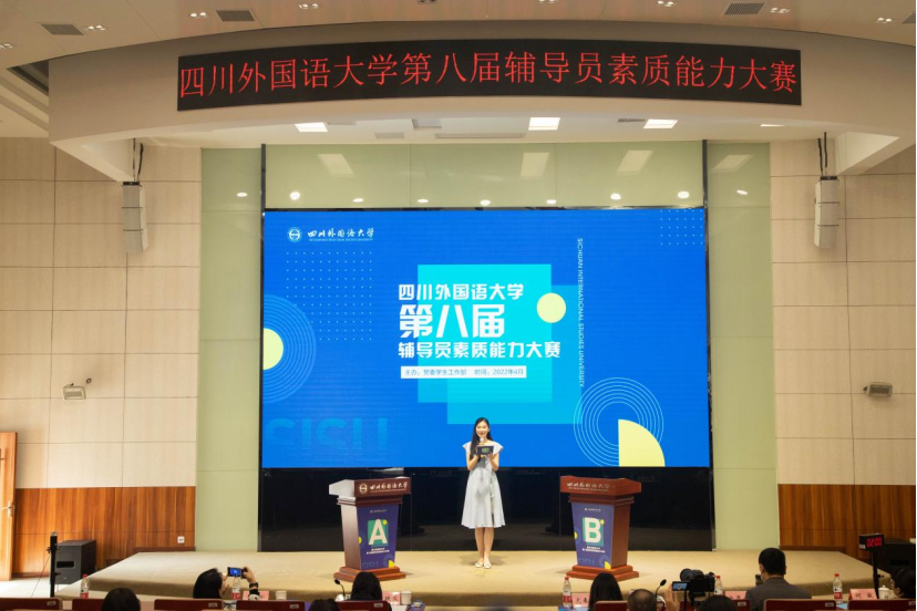 2022年4月8日,四川外国语大学第八届辅导员素质能力大赛决赛在东区宏文楼国际报告厅举行。本次大赛由学校党委学生工作部主办,新闻传播学院承办。中共重庆市委教育工委、重庆市教委宣教处副处长尤春艳,重庆市第二师范学院党委学工部部长胡轶众,重庆邮电大学党委学工部副部长杨德山,四川外国语大学日语学院党总支书记曾珍、党委学工部副部长何敏担任评委。我校副校长李彦,党委学工部负责人,各学院党总支书记、副书记,辅导员及班主任观摩比赛。