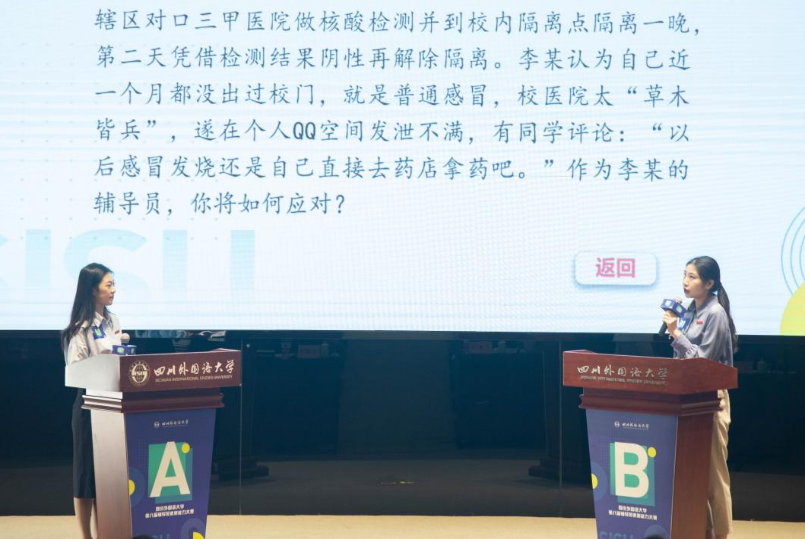案例研讨以一问一答的形式开展,参赛辅导员们围绕具体案例共同辨析原因、研讨对策、总结规律,展现出综合运用理论分析问题、研判问题的能力。选手们从思想剖析和实践行动两个层面入手,从容应答,观众席掌声迭起。