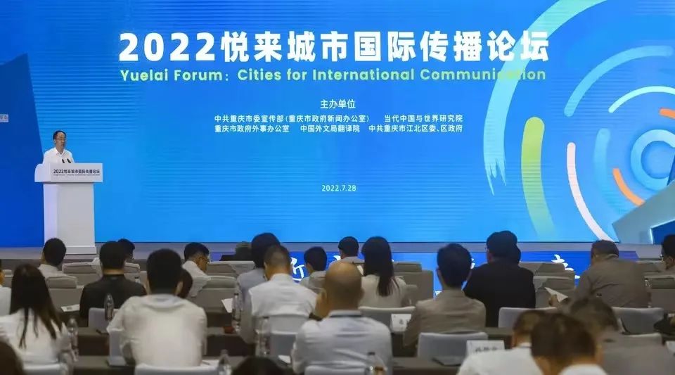 2022悦来城市国际传播论坛由中国外文局支持,重庆市委宣传部(市政府新闻办)、市政府外办、当代中国与世界研究院、中国外文局翻译院、重庆市江北区委、区政府共同主办。