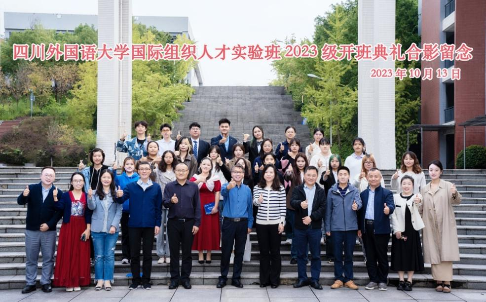 2023年10月13日下午,四川外国语大学国际组织人才实验班2023级开班典礼在歌乐楼A2-1顺利举行。副校长卢波、党委学生工作部(学生处)部长崔光军、招生就业处处长申安桂、教务处副处长陈汝平、英国埃塞克斯大学中国区主任孙聪、英国教育中心代表、国际关系学院院长宋国华、副院长吴兵以及教师代表出席典礼。典礼由国组班2023级新生刘嘉琦、任屹峥主持,国际组织人才实验班2021、2022和2023级全体同学参加开班典礼。