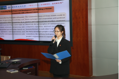 活动中,重庆理工大学2022级金融教改班曹鹤轩同学、我校国际金融与贸易学院谭媛媛同学领学了党的二十大报告中英文版。参会人员紧扣党的二十大报告原文,结合自身实际,围绕乡村振兴、区域协调发展、构建新发展格局、构建人类命运共同体等开展交流讨论。