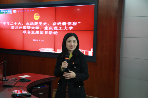 3月24日,我校国际金融与贸易学院学生会功能型团支部与重庆理工大学2022级金融教改班团支部联合开展了“学习二十大、永远跟党走、奋进新征程”主题团日活动。校党委常委、副校长李彦出席活动,重庆理工大学团委书记龙婷,经济金融学院党委副书记臧仁德,经济金融学院学办主任、团总支书记唐沙,2022级金融教改班辅导员张映雪,校团委书记陈派,国际金融与贸易学院党总支书记曾健,团委综合科科长曹海燕参加活动。