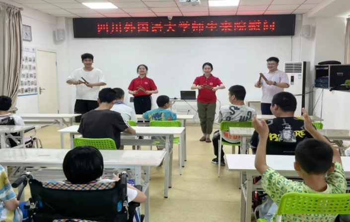 社会实践团第二站——双语艺术教育,志愿者们来到四川省内江市儿童福利院并开展了高质量、高水平、高效率的交流与合作。精彩的文艺汇演节目、灵活的互动环节、非遗文化的展示为福利院儿童们传输多元文化,播种希望的种子。此次双语艺术活动促进双语艺术教育人才的培养与国际教育一体化。同时也将专业理论知识投入到社会实践中,提升了同学们的综合素质。