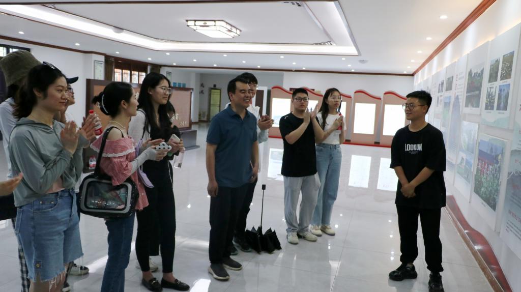 在村委会,工作人员郑典向师生们讲述了集体村的发展历史、发展思路和发展成果。