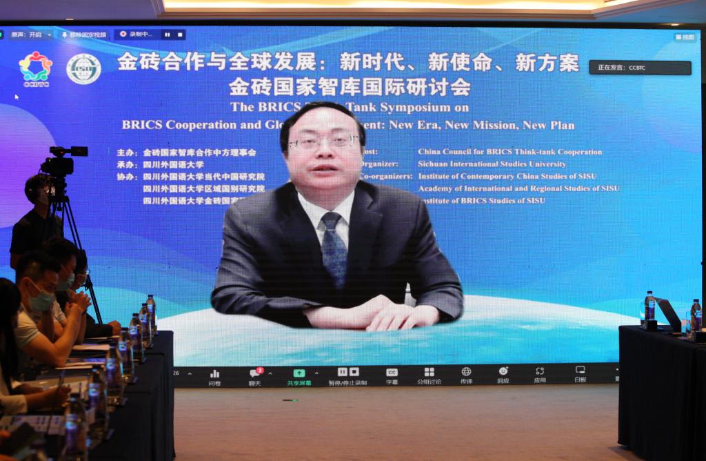 5月6日,2022年第二场金砖国家智库国际研讨会以线上线下相结合的方式在重庆举行。此次会议主题为“金砖合作与全球发展:新时代、新使命、新方案”,由金砖国家智库合作中方牵头单位——金砖国家智库合作中方理事会主办,金砖国家智库合作中方理事会副理事长单位——四川外国语大学承办。来自金砖五国的智库学者和企业界人士围绕主题展开了深入交流与探讨。