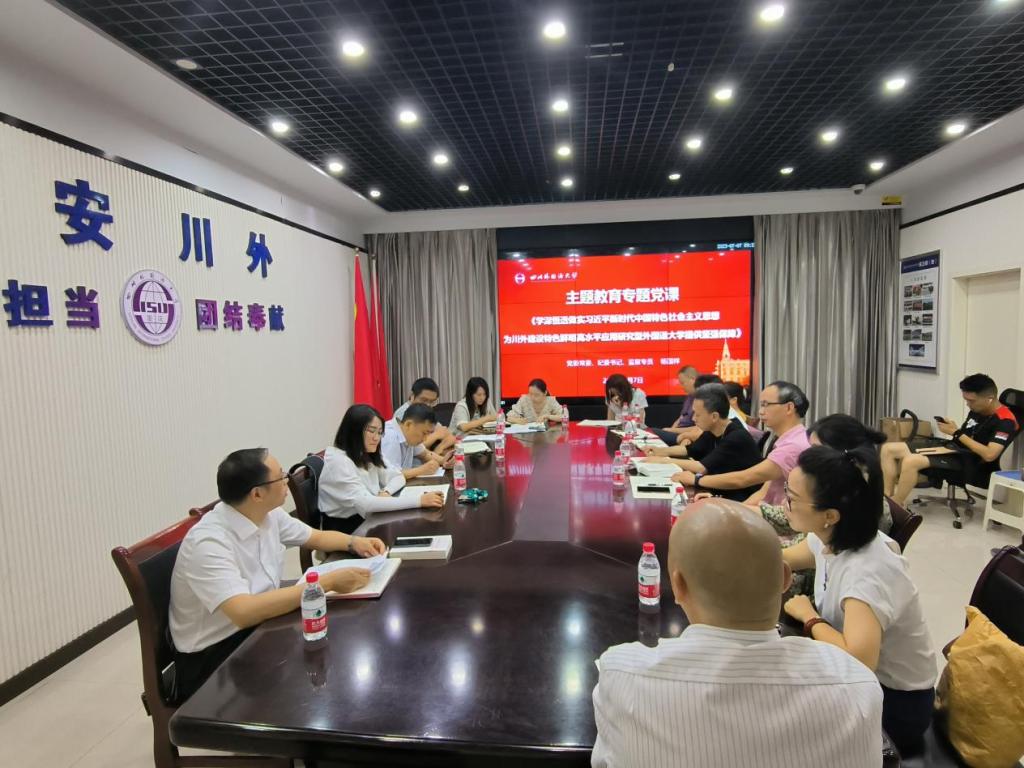 根据学校主题教育工作安排,2023年7月7日,学校党委常委、纪委书记、监察专员杨国祥作题为《学深悟透做实习近平新时代中国特色社会主义思想 为川外建设特色鲜明高水平应用研究型外国语大学提供坚强保障》的专题党课,机关第一党总支第二党支部全体党员参加。