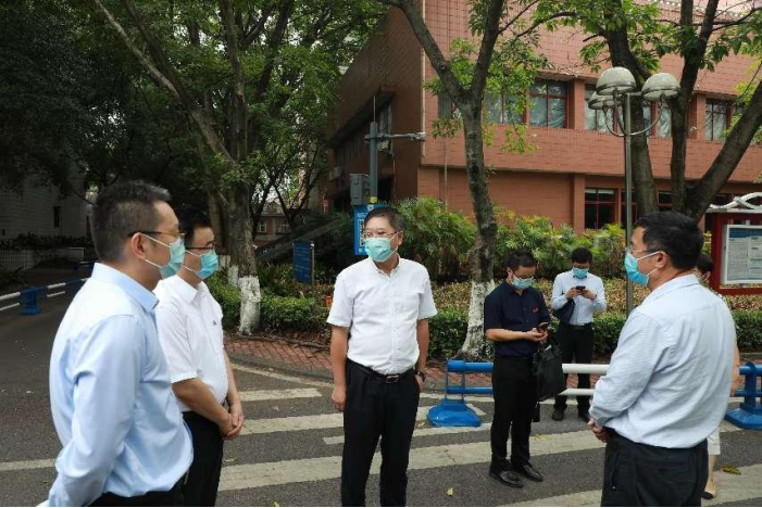 8月31日,市委教育工委书记、市教委主任黄政到我校调研指导疫情防控、开学准备等相关工作,市教委副主任温涛及市教委相关部门人员陪同检查,我校党委书记邹渝、校长董洪川及相关职能部门负责人参加了此次调研。