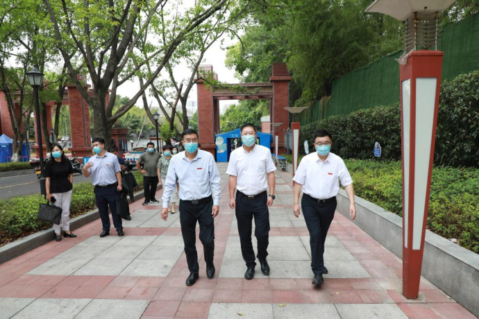 黄政一行查看了我校大门口临时健康观察点和校内集中健康观察点,检查了我校健康管理观察流程、防疫医疗物资准备情况,听取了校领导汇报开学准备和疫情防控等相关工作。