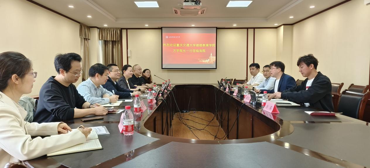 2024年4月23日上午,重庆交通大学继续教育学院万宇院长一行来到我校网络与继续教育学院参观考察,双方在宏文楼第二会议室进行了友好交流。我校网络与继续教育学院院长黄进财、综合办主任张丕元、招生办公室主任程小明等出席此次会议。会议由黄进财院长主持。