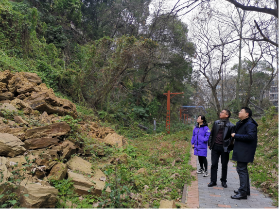 校领导现场查勘危岩路段