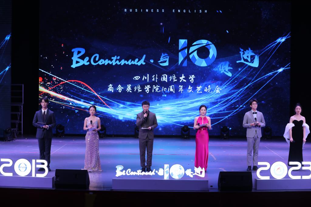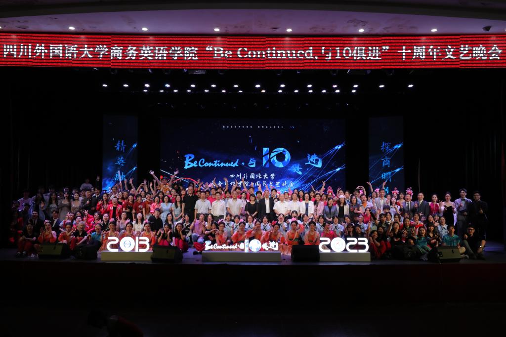 风雨兼程,十载造就国之栋梁;潜心奉献,十年博得桃李芬芳。2023年5月18日晚,商务英语学院于东区大礼堂举办了以“Be Continued·与10俱进”为主题的十周年院庆晚会。晚会荣幸地邀请到了众多德高望重的师长们,事业有成的校友们等欢聚一堂,为忆往昔峥嵘岁月,共待明日俊采星驰创辉煌。出席本次大会的嘉宾有: