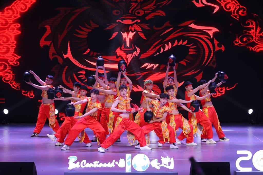 “我觉君非池中物,咫尺蛟龙云雨”,一舞《醉龙吟》以中国传统武术文化的形式,凭借“模仿龙形,表现豪迈”为特点,彰显了“青龙出海势难挡,拨云见日定乾坤”磅礴大气之势。