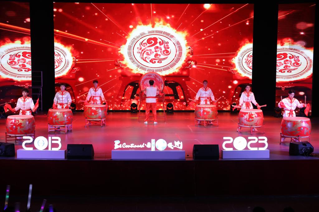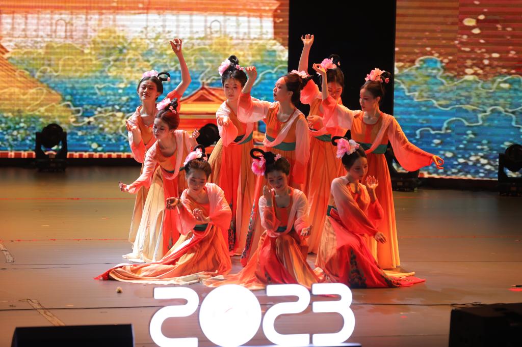 鼓韵龙腾,浑厚奔放的阵阵鼓声犹如黄河之波澜壮阔。欢腾的锣鼓声不仅敲出了青年的朝气蓬勃,其中蕴含的澎湃之感更是彰显了对学院的热烈祝贺。“一花独放不是春,百花齐放春满园”青春正如这百花齐放般绚烂无比。舞带飞扬,绘就一簇簇盛开的花朵,步履轻盈,彰显一幕幕绝美的舞姿。这,正是青春最好的写照。