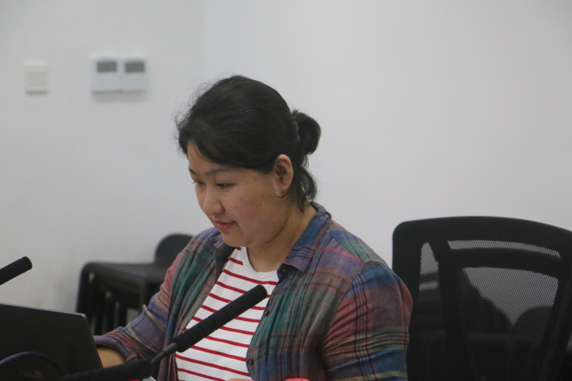 李小燕讲师分享了“杂糅舞台空间中的死亡寓言——论 《牛奶车》的跨文化戏剧策略”,并着重解析了其中东西方杂糅的特点及其跨文化的表现形式。