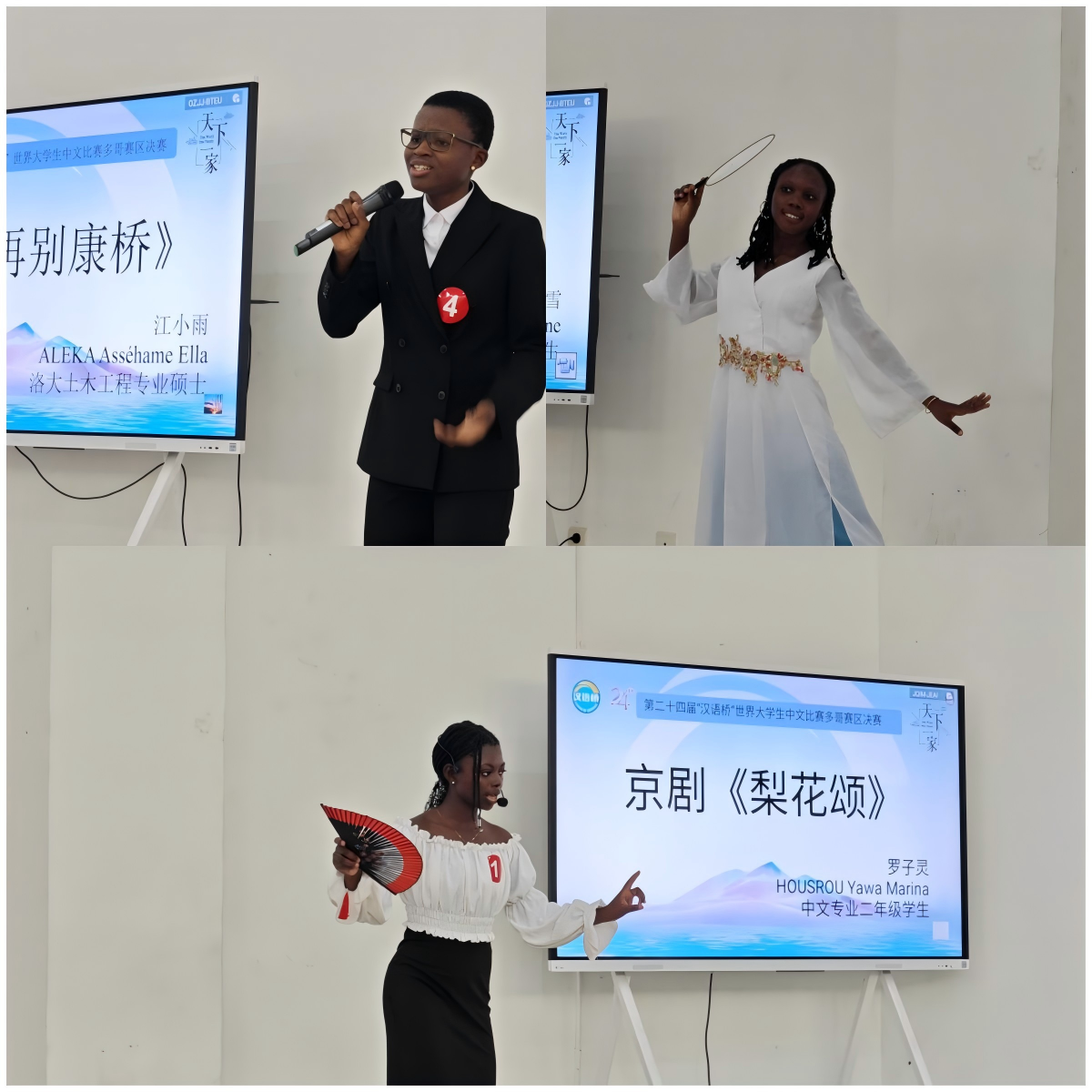 经过激烈角逐,来自洛美大学土木工程专业的学生江小雨(ALEKA Asséhame Ella)凭借出色表现赢得了在场评委的一致好评,摘得桂冠,将代表多哥赴中国参加全球决赛。来自洛美大学中文专业二年级的学生詹秋怡(AFANTCHAWO Massan Peace)则凭借婉转缠绵的歌喉,赢得了亚军。